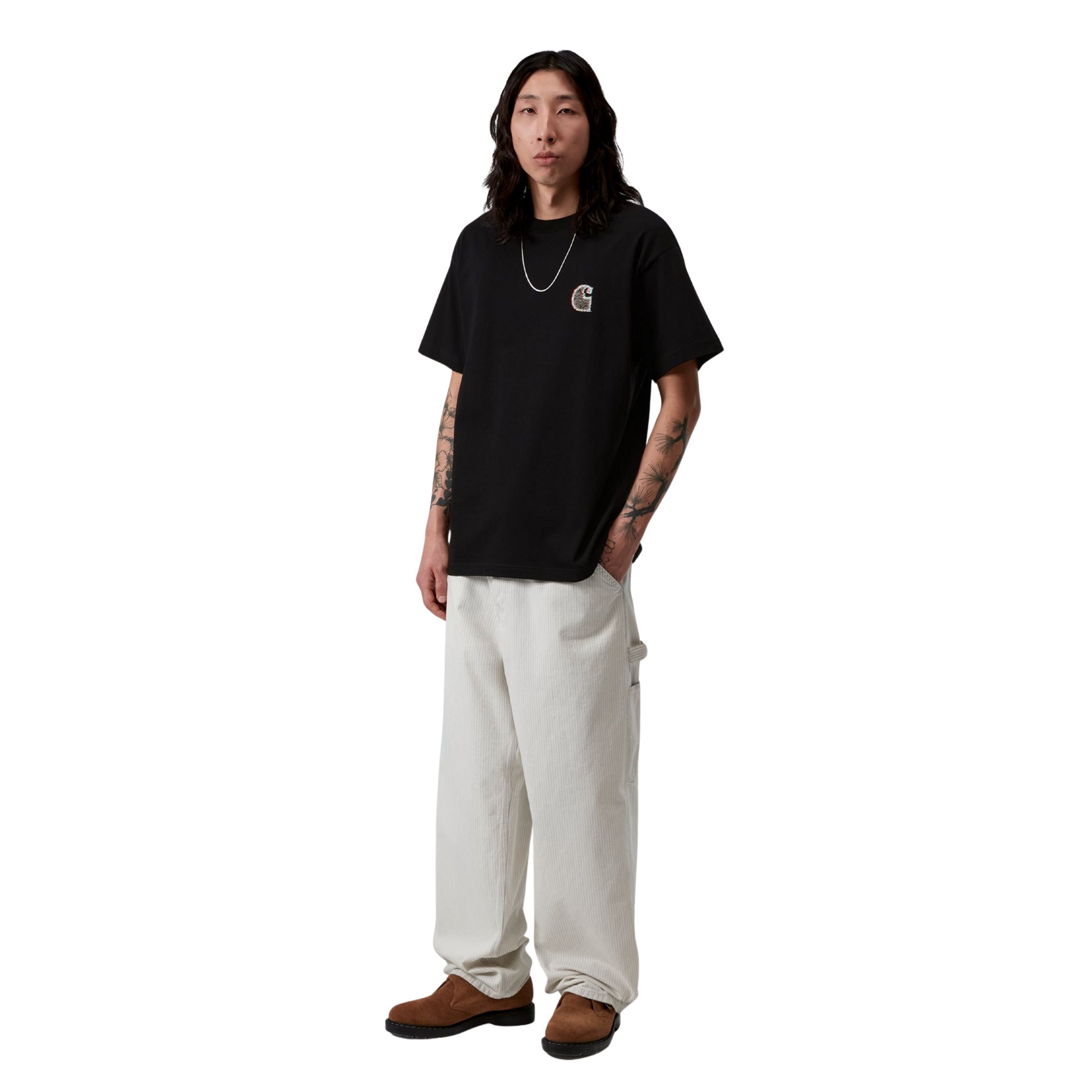 A T-Shirt de manga curta Carhartt WIP Mind Your Head na cor preta é a peça fundamental para quem procura aliar o conforto do algodão biológico a um design gráfico impactante no universo do streetwear. Disponível na La La Land Store, esta t-shirt de homem é confecionada em malha de 100% algodão biológico de textura média, garantindo um toque suave na pele e uma resistência superior para o uso diário. O design destaca-se pelos motivos gráficos exclusivos estampados tanto na parte frontal como nas costas, refletindo a estética criativa e urbana que caracteriza a Carhartt WIP.